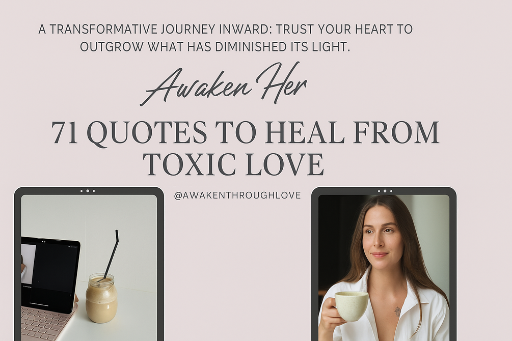 This beautifully curated starter pack includes 71 gentle-yet-powerful quote graphics and a set of soul-nourishing affirmations to help you let go of toxic love, rebuild self-worth, and reconnect with your emotional truth.